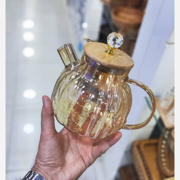 قوری پیرکس شامپاینی شیاردار درب الماسی